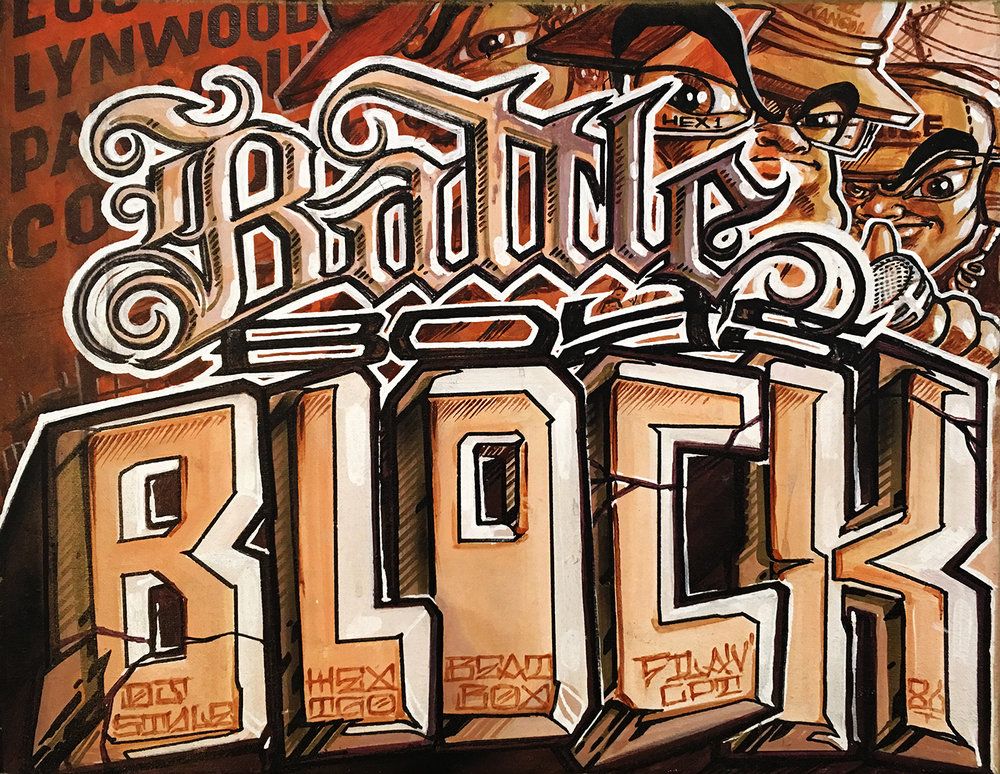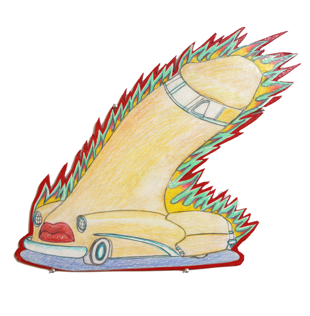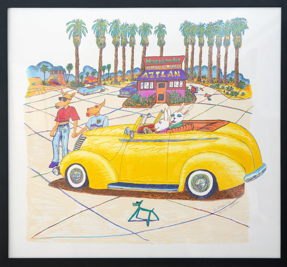 Gilbert “Magu” Luján – ink drawing of hot rod, approx 8x8"